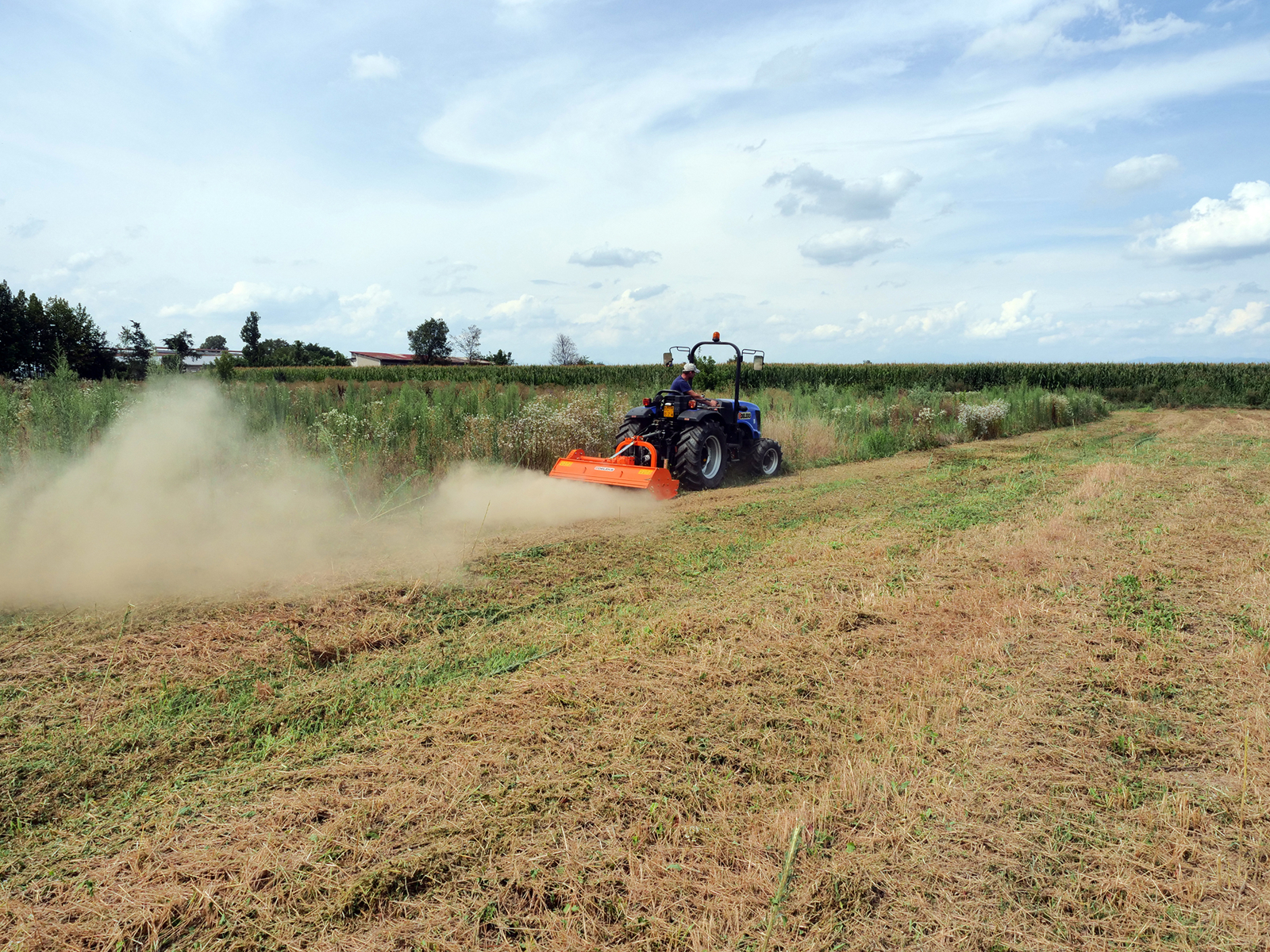 The TIGRE-180 flail mower has been designed for professional use in fields, meadows, parks, orchards etc. It is ideal mulching grass but is strong enough to handle shredding corn storks and heavy rushes. Thanks to its solid frame and 160.0 mm rotor it can be used for work on the flat ground and verges. Compatible with all brands of tractors with Cat. 1-2 three-point linkage e.g Fiat, Ford, New Holland T3-T4, John Deere 3-4, Lamborghini Ego, Deutz-Fahr, Landini, Kubota, Goldoni, etc.