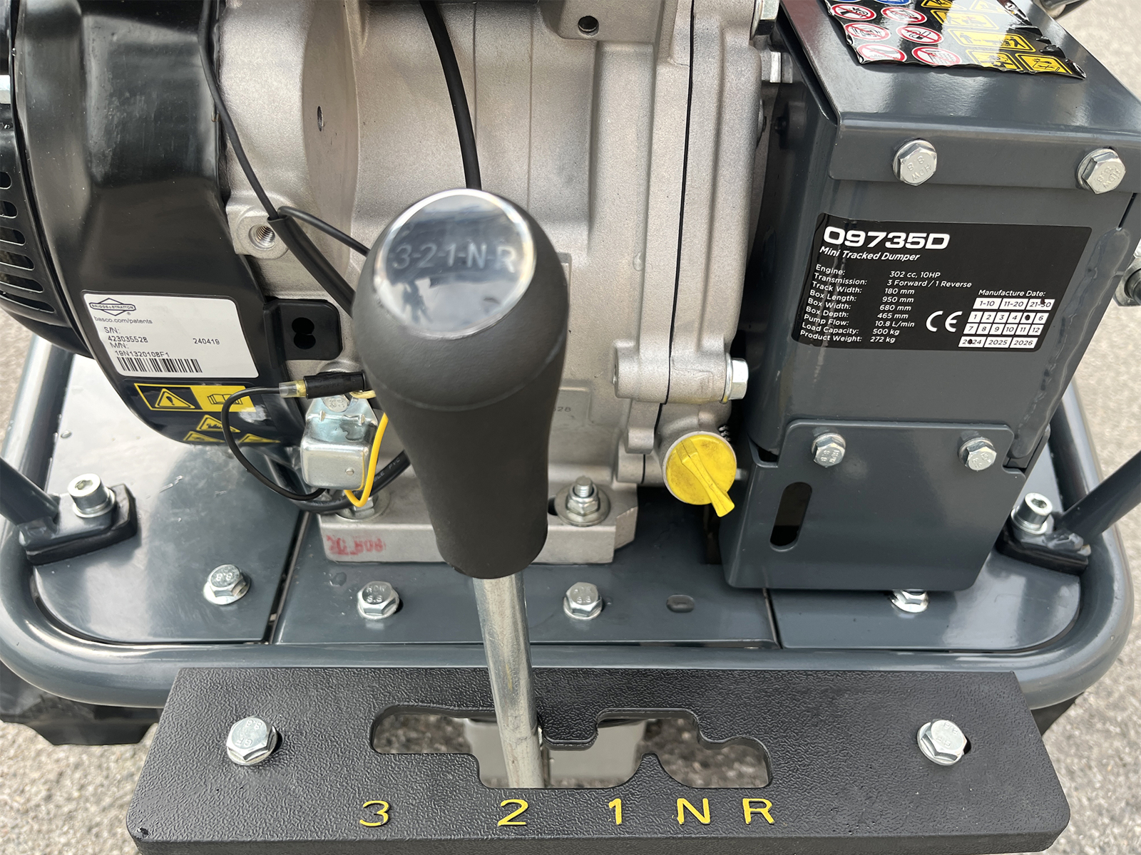 It is powered by a reliable Briggs & Stratton XR1450 petrol engine, delivering a rated power of 10 HP and a maximum power of 12 HP, providing high torque and consistent performance even under heavy load.
