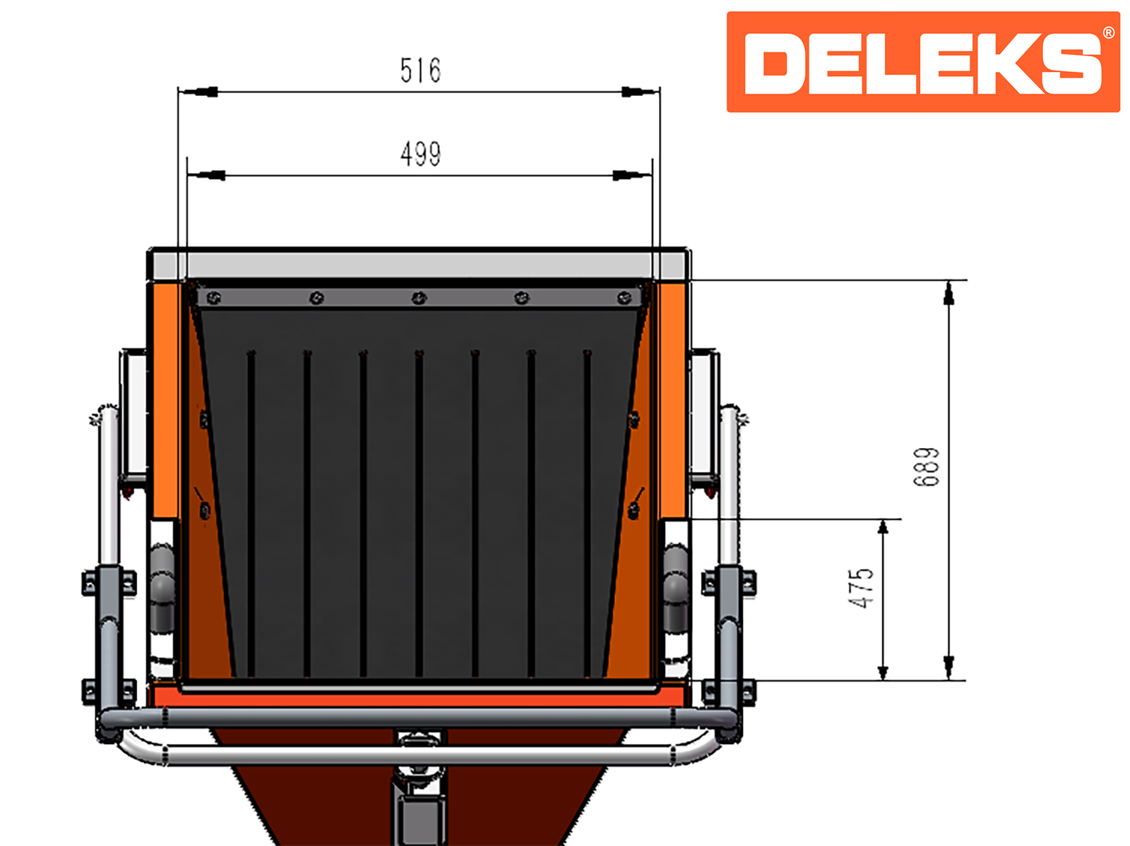 Reinforced discharge chute made of heavy-gauge tubular steel, 1.8 m high, adjustable and quickly removable