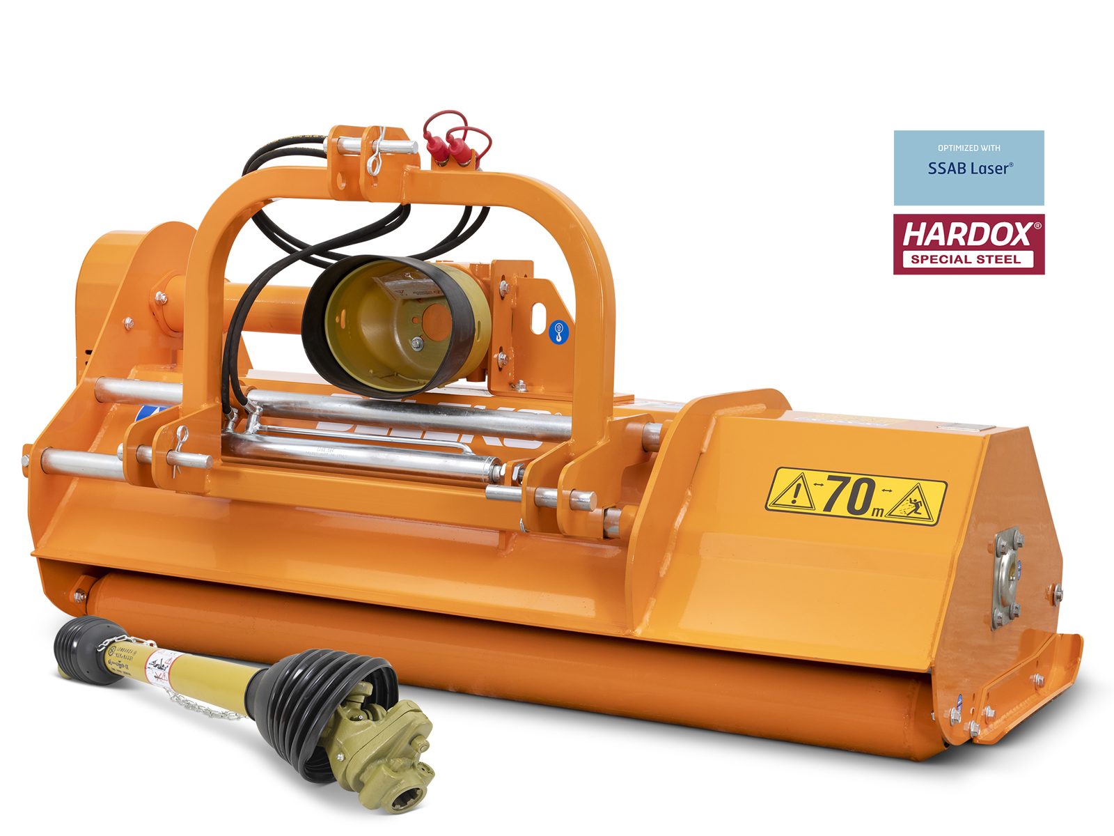 Thanks to its 4mm frame (5mm above the rotor) is durable and sturdy enough to handle vegetation up to 3-4cm in thickness. This mower fits most 40-70hp tractors e.g Carraro Rev – Goldoni Ronin, Aster, Maxter – Valpadana – BCS – Ferrari – Pasquali- Holder – Kubota – Iseki – Landini Mistral, Serie 2 – Same Solaris, Dorado, Deutz Agrokid – New Holland TCE, BOOMER 20-50 – John Deere Serie 3 - 4.