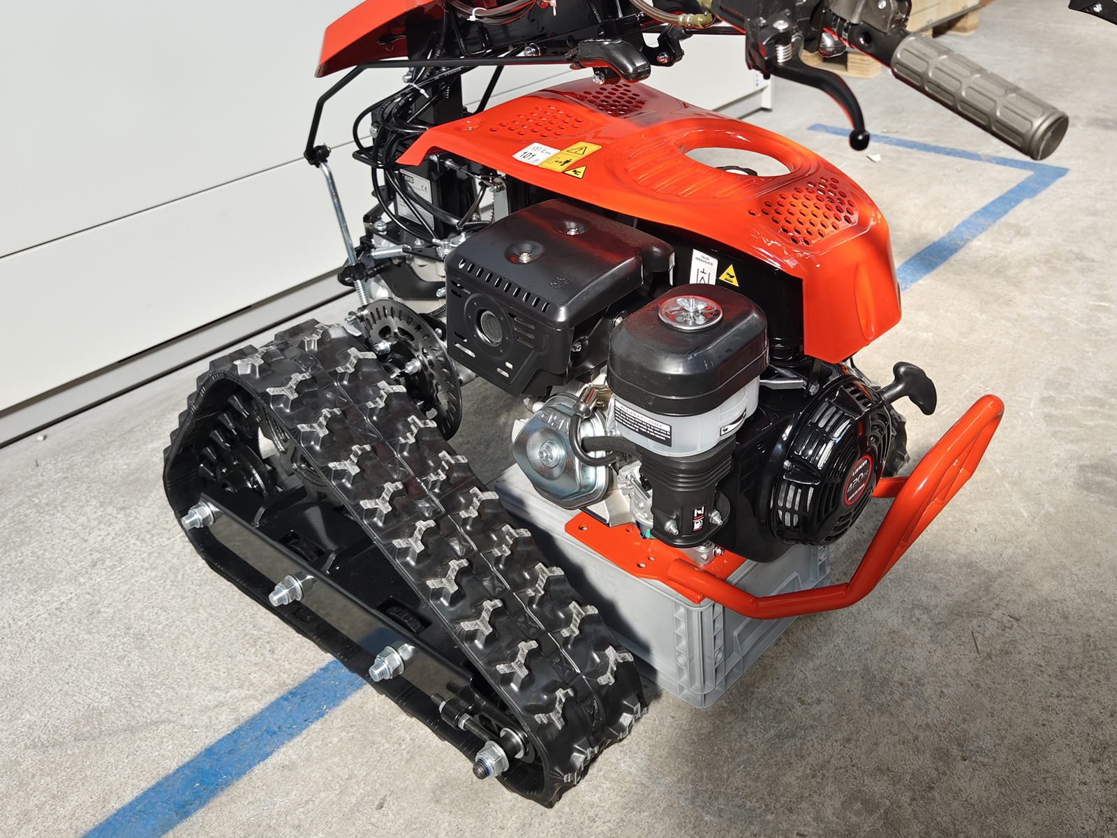STÄNGDELEKS® ZEUS Vändbar, mångsidig gående traktor med gummibälter, 14 hk Loncin-bensinmotor, 3+2 växellåda med snabbväxel, olika tillbehör på begäran, Snabbfäste (hona) medföljer.